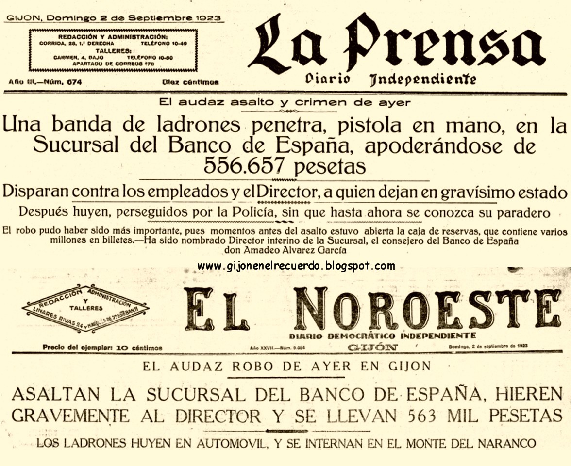 en Gijón el primer gran atraco a mano armada a un banco llevado a cabo